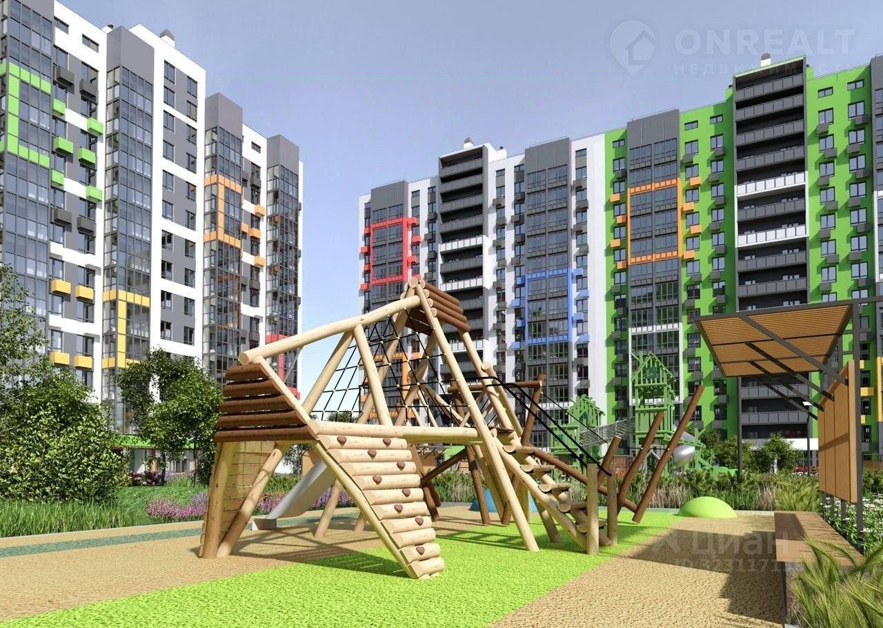 Двор комплекса без машин, огороженная территория с современной детской площадкой и зоной отдыха. Вход без ступеней. Корзины для кондиционеров. Для детей всех возрастов установлено большое количество игровых площадок.