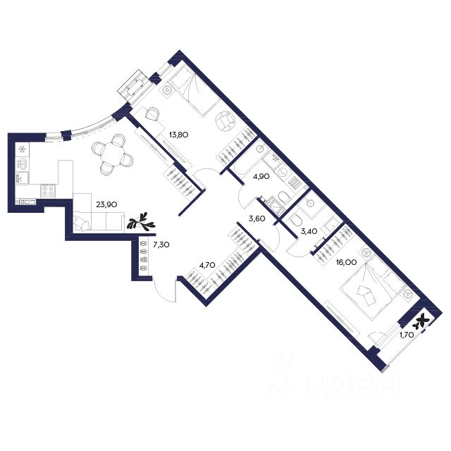 Ваше время и силы уже сэкономлены. Полная готовность: Тёплые полы в санузлах, дизайнерские черные розетки, светлый ламинат 33 класса, керамогранит. Технологично продумано: Выводы для посудомоечной и стиральной машины, дренаж для кондиционера, internet-розетки, закладные под гардеробные. Финансово выгодно: Отделка уже включена в стоимость квартиры и в ипотеку. Никаких скрытых платежей, стройки и пыли после новоселья.