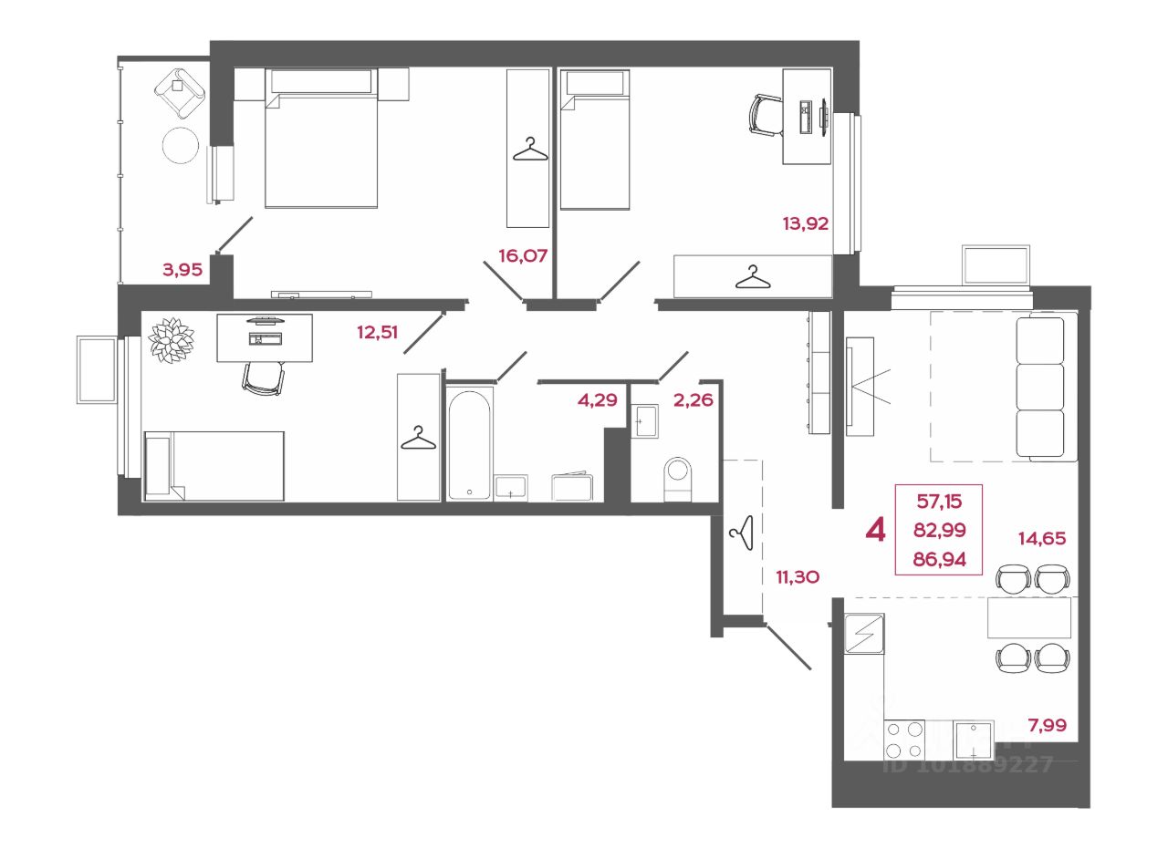 Общая площадь86,94 м2