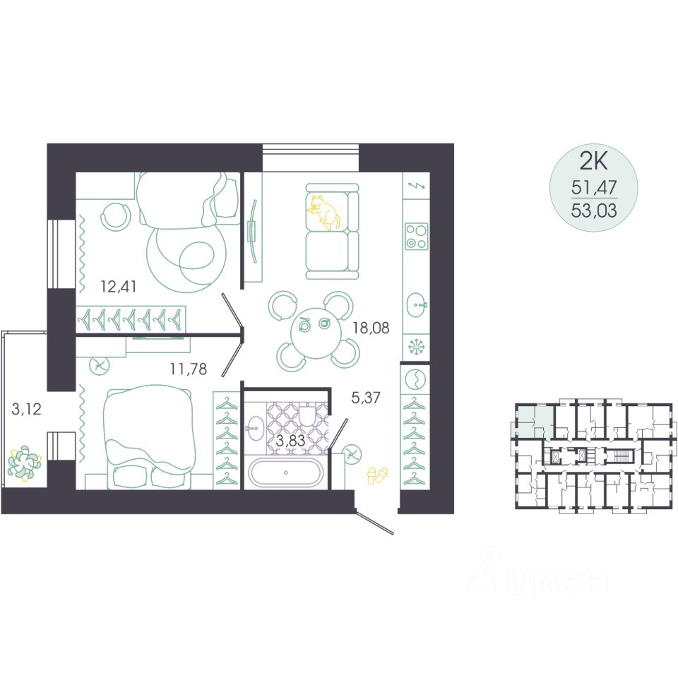 продам 2-к, Колышлейская, 76 096 120 ₽