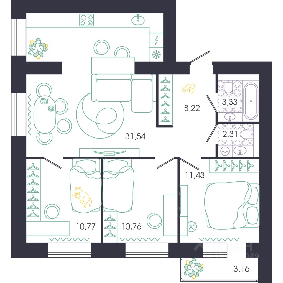 Квартиры в ЖК ''ДОБРОЕ'' - проработанные планировки от ведущих дизайнеров. 1. Уютные кухни-гостиные 2. Квартиры с мастер-спальнями 3. Квартиры с гардеробными 4. Квартиры с функциональными хозяйственными зонами