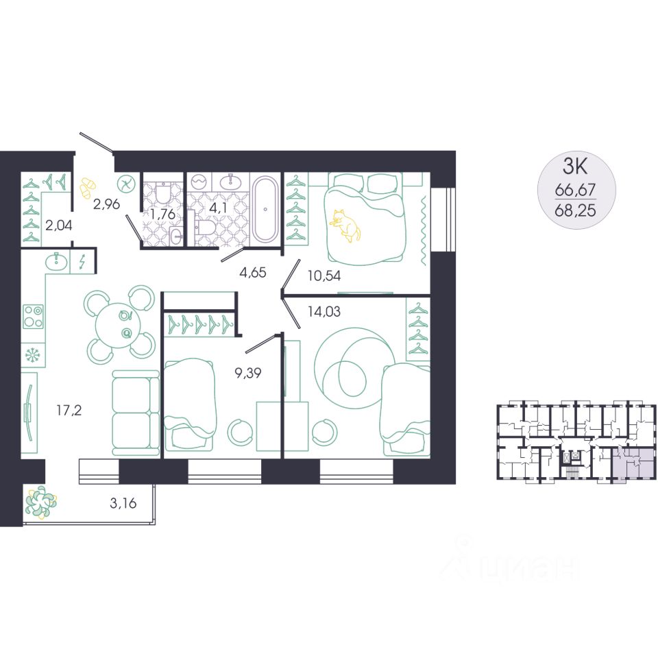 продам 3-к, Колышлейская, 77 748 400 ₽