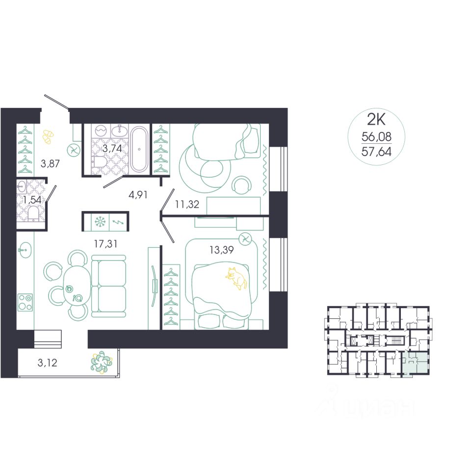 продам 2-к, Колышлейская, 76 796 680 ₽