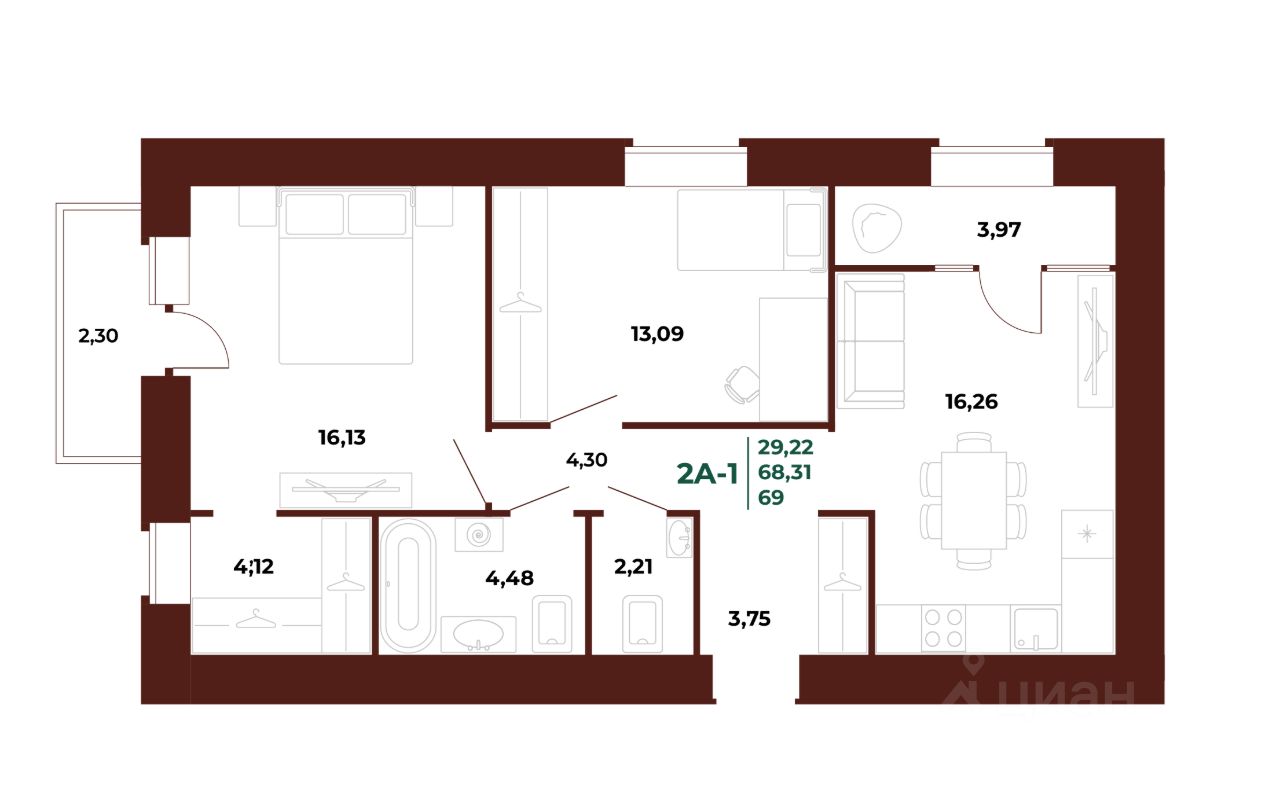 Общая площадь69 м2