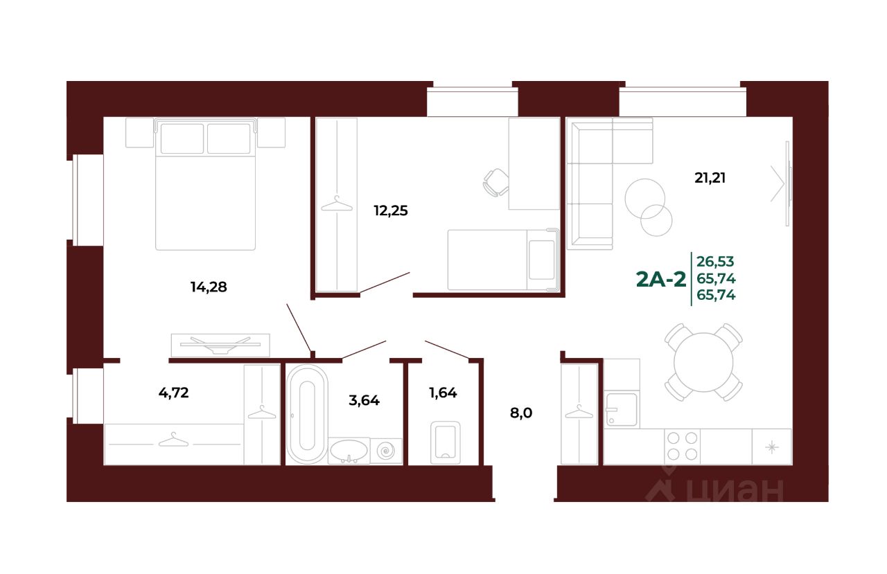 Общая площадь66,37 м2
