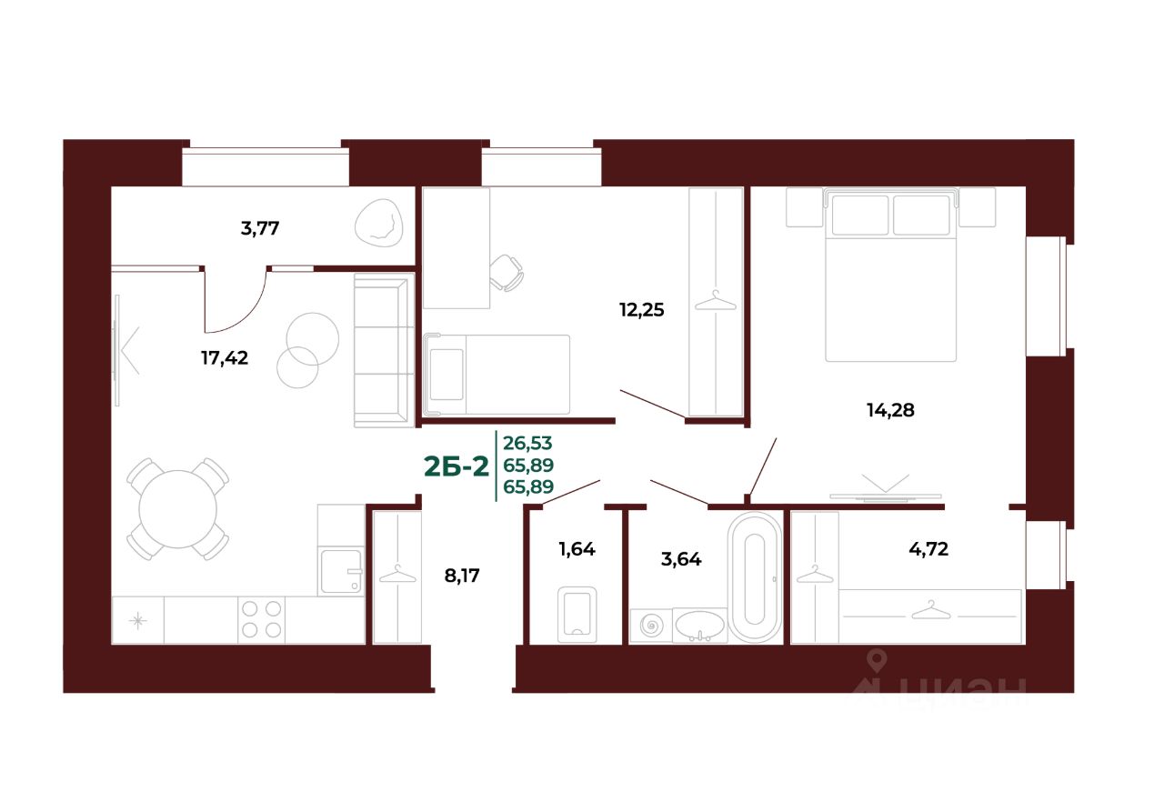 Общая площадь68,89 м2