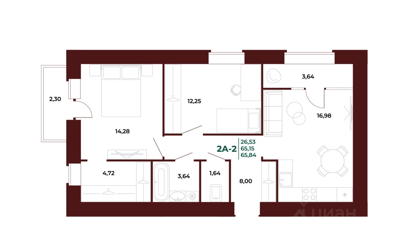 Общая площадь66,52 м2