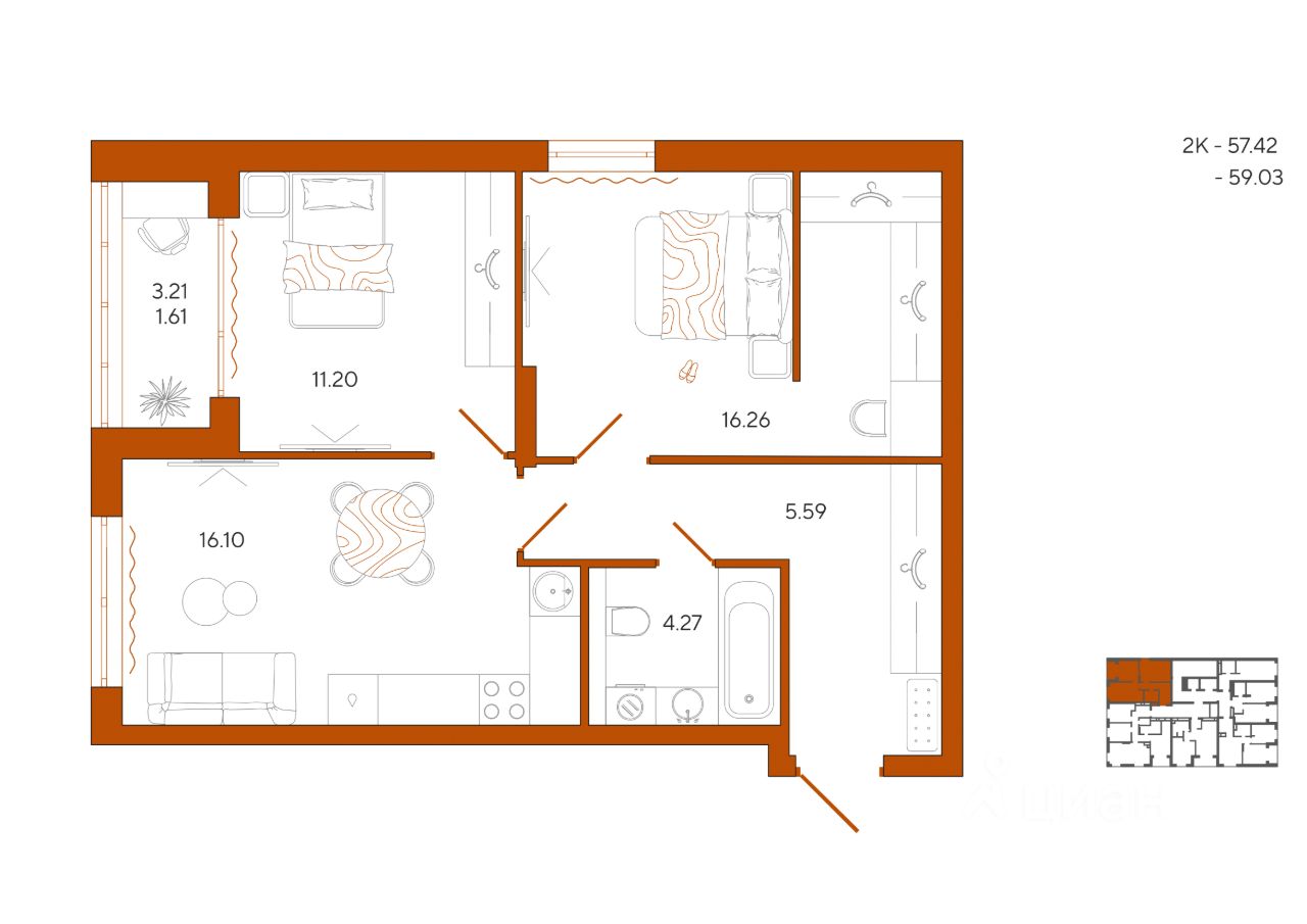 Общая площадь59,03 м2