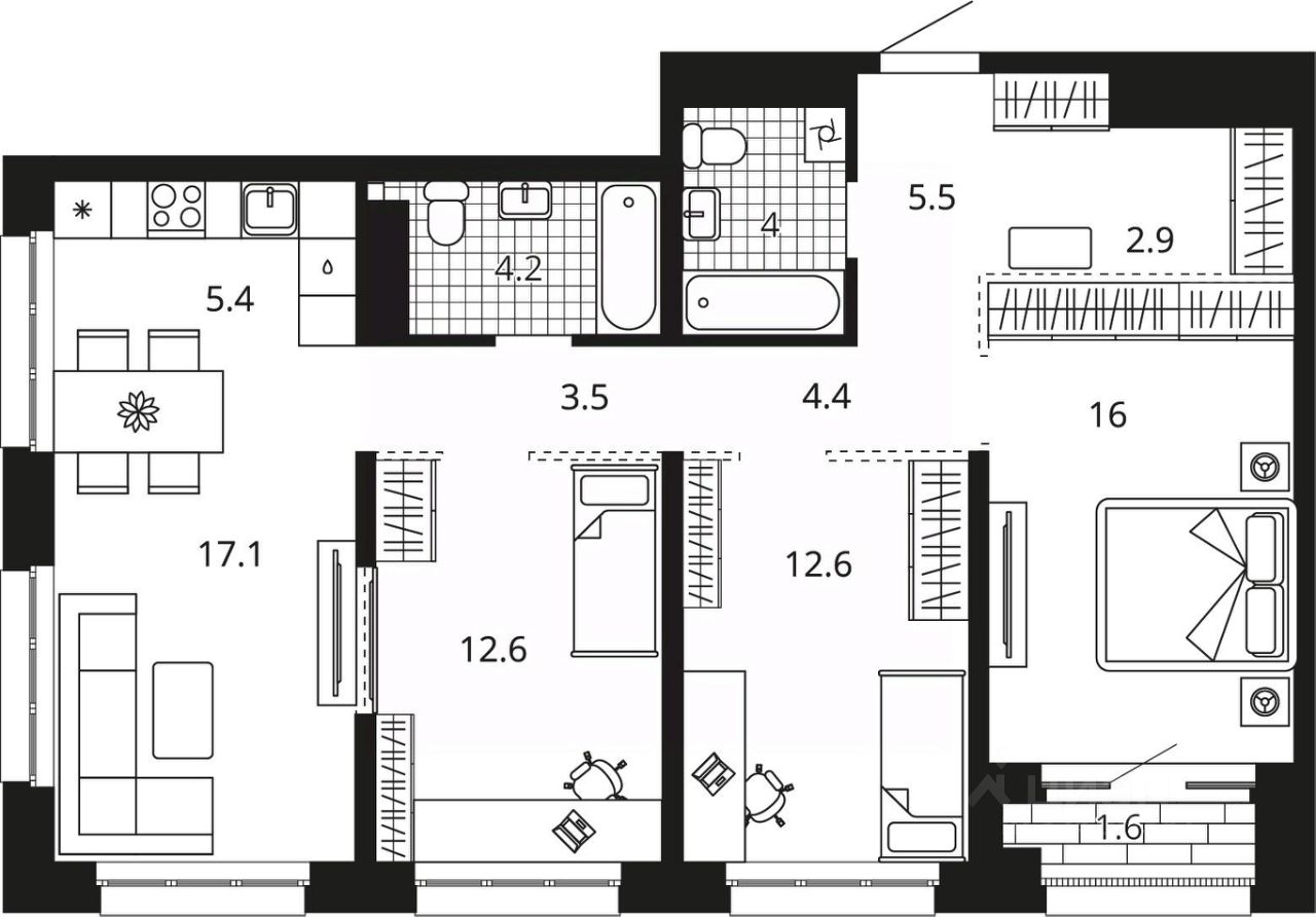 продам 3-к квартира12 406 200 ₽