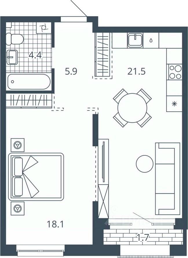 Жилая площадь18,1 м2