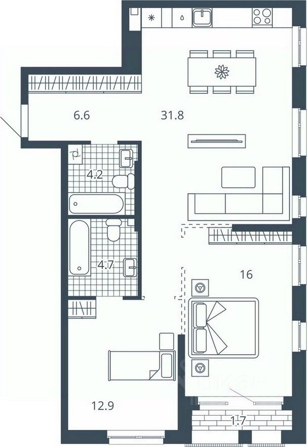 Жилая площадь28,8 м2