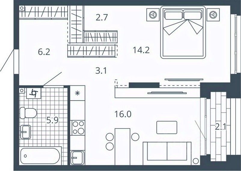 Жилая площадь14,2 м2