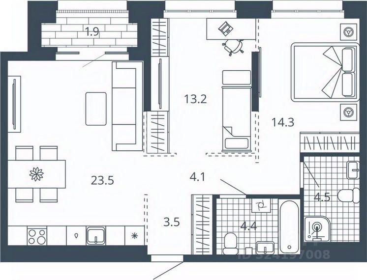 Общая площадь69,4 м2