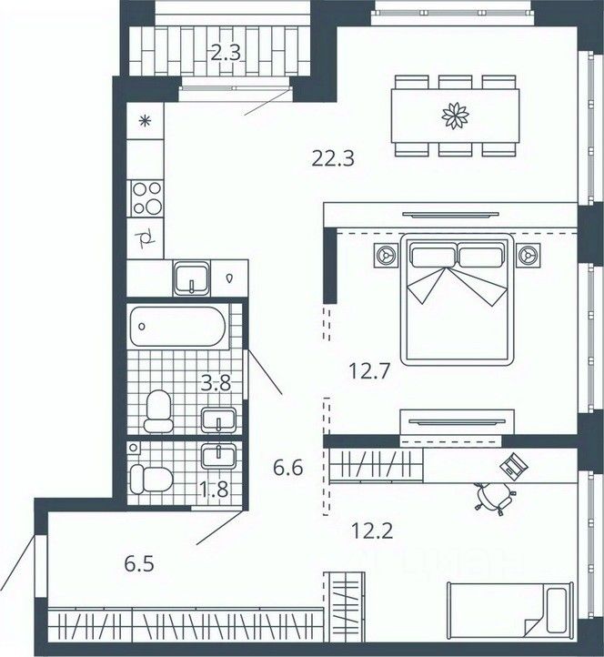 Жилая площадь33,7 м2