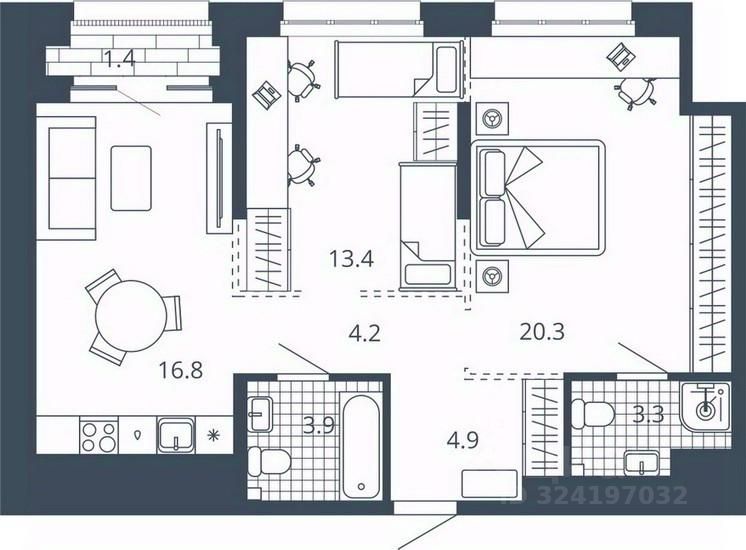 Общая площадь68,2 м2