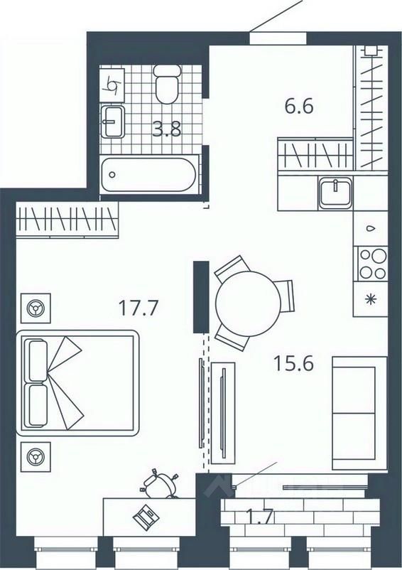 Жилая площадь17,7 м2