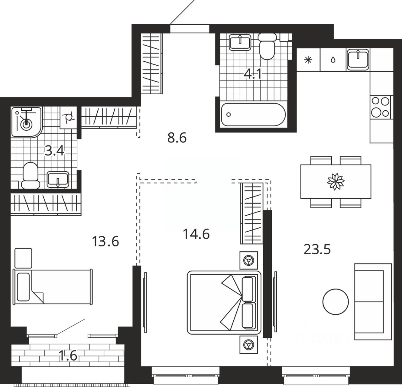 Общая площадь69,1 м2