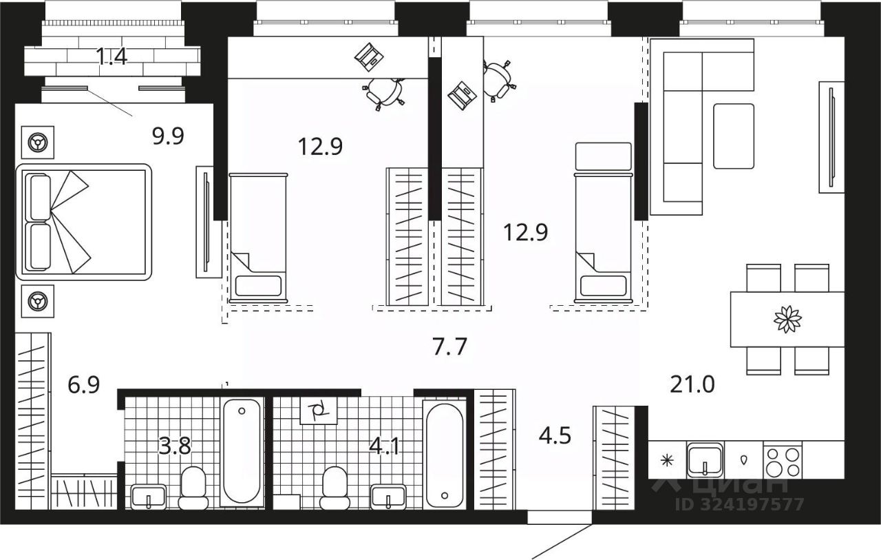 продам 3-к квартира12 169 300 ₽