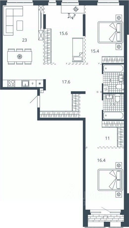 продам 3-к квартира15 378 600 ₽