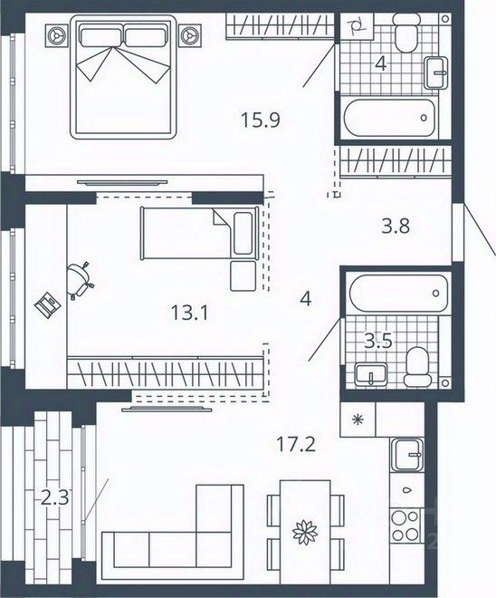 Кухня17,2 м2