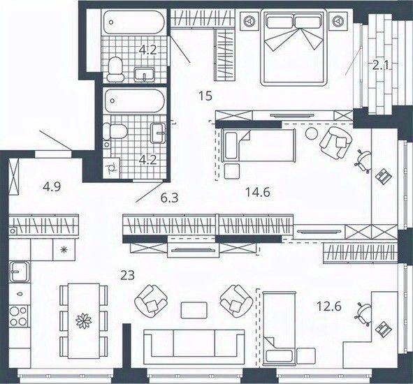 Жилая площадь42,2 м2