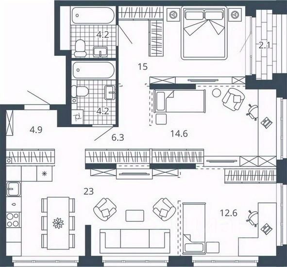 продам 3-к квартира12 556 800 ₽