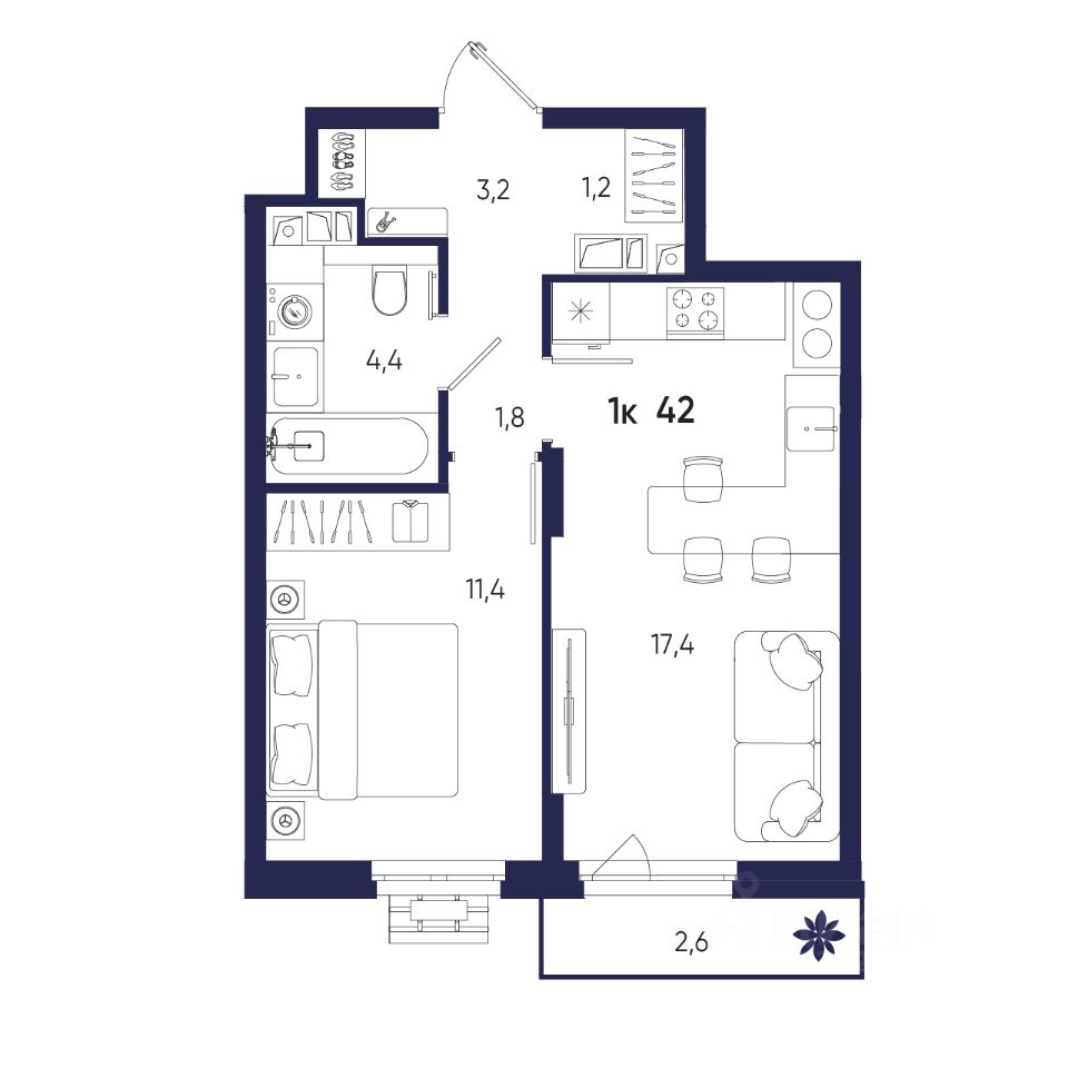 Общая площадь42 м2