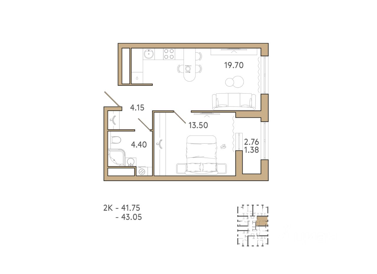Общая площадь43,05 м2