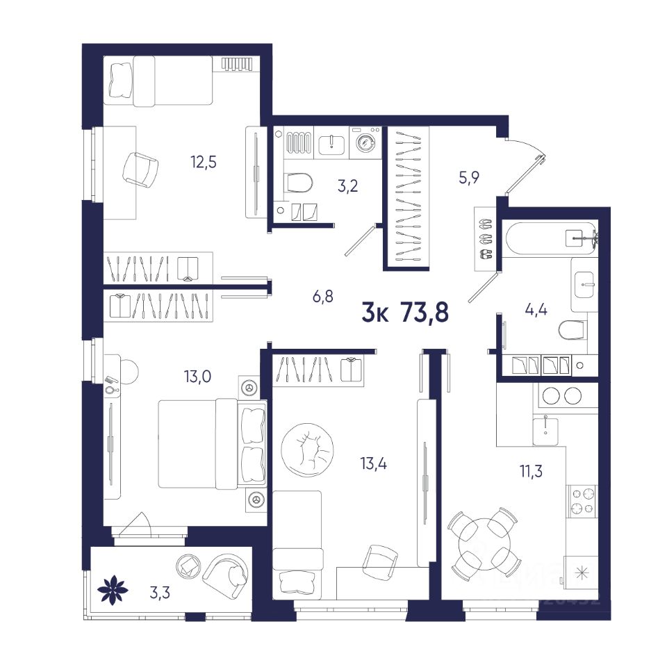 Общая площадь73,8 м2