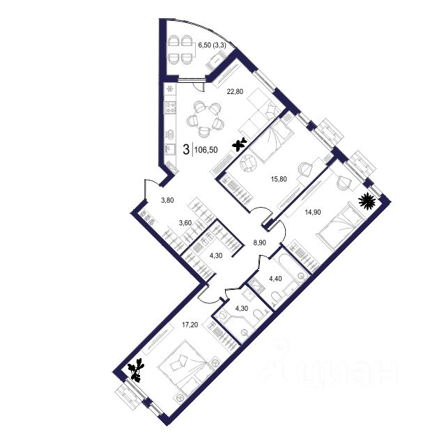 Общая площадь106,5 м2