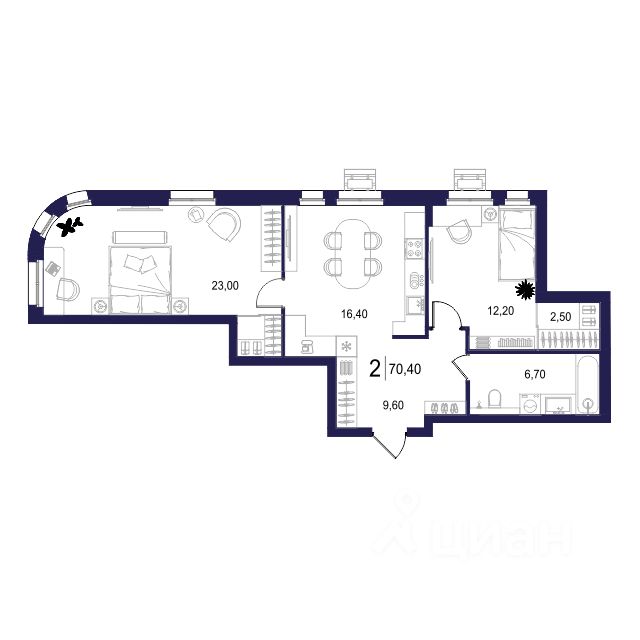 Общая площадь70,4 м2