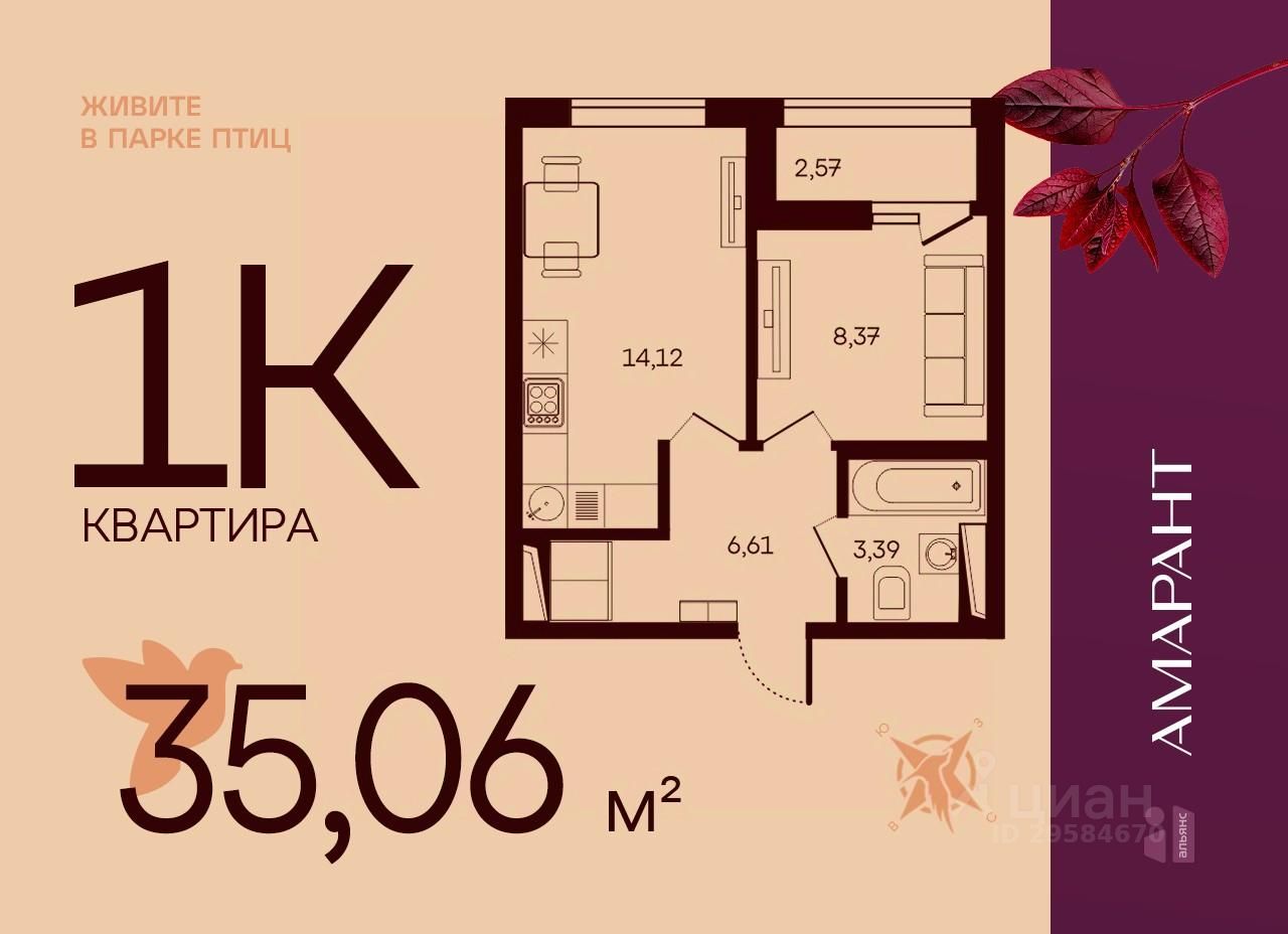 Общая площадь35,06 м2