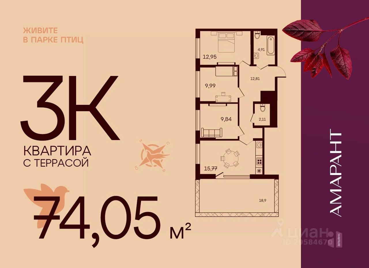 Общая площадь74,05 м2