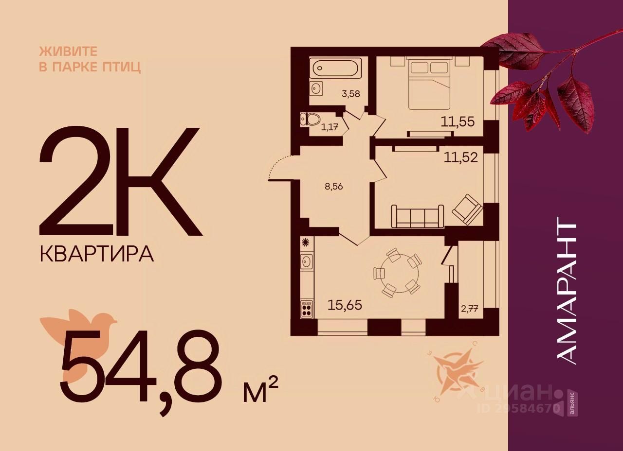 Общая площадь54,8 м2