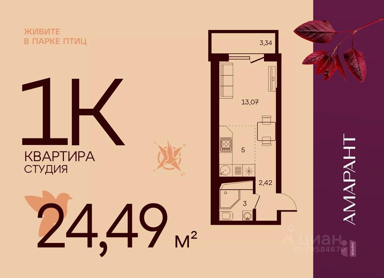 Общая площадь24,49 м2