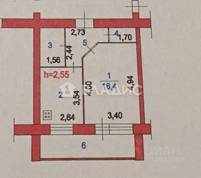 - Высота потолков: 2,55 м.