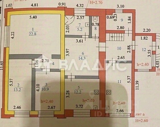 Площадь дома: 110кв.м. Жилая площадь: 46,9кв.м. Кухня12,2кв.м. Летняя кухня :11 кв м Три комнаты : 22,8+13,2+10,2кв.м. Холл: 14,3 кв.м. Погреб вместительный