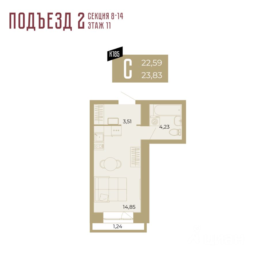 продам 1-к квартира3 452 000 ₽