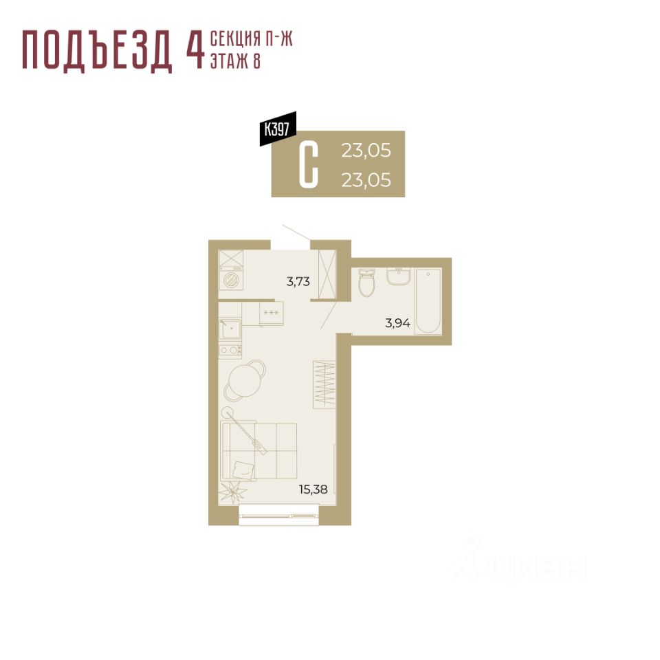 продам 1-к квартира3 515 000 ₽