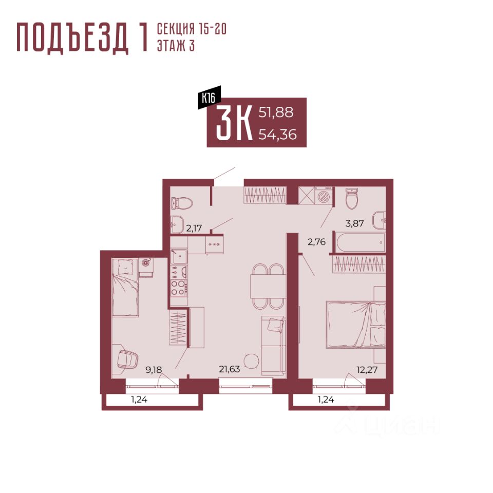 продам 3-к квартира6 805 000 ₽