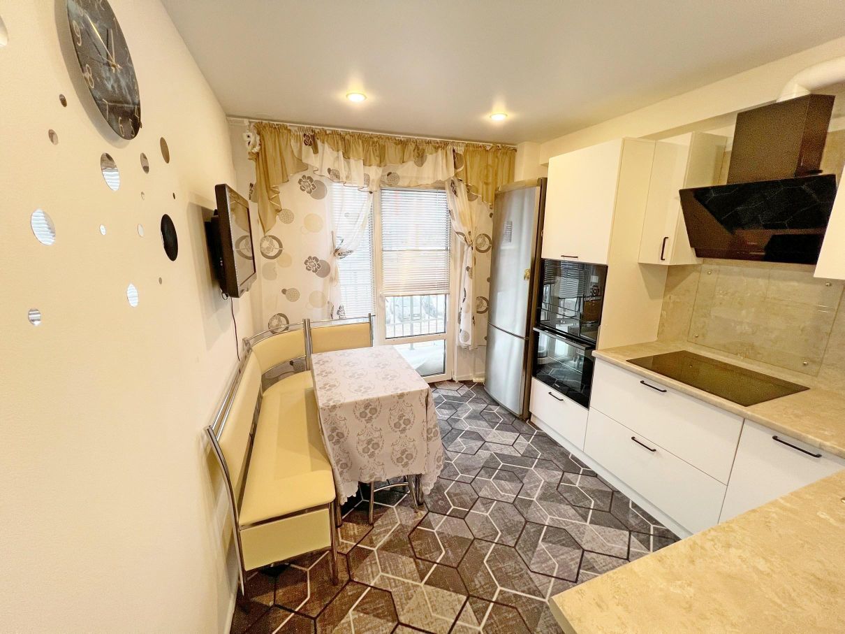 Квартира чистом, жилом состоянии ''заходи, живи''! Полностью укомплектована новой, современной мебелью и техникой: кухонный гарнитур, обеденная группа, холодильник, диван, шкафы, органайзер в гардеробной и пр., все остается. Отделка от застройщика: на полу ламинат, натяжные потолки, обои, санузел совмещенный в керамограните, межкомнатные и входная двери. Расширенный стеклопакет придает большой поток света! Выход на балкон имеет панорамное остекление. Особенностью этой квартиры является удобная гардеробная!