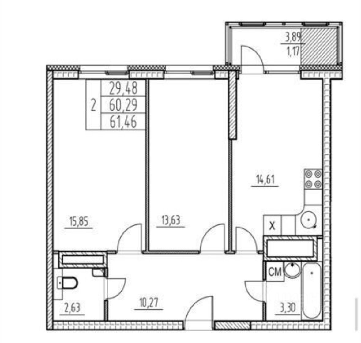 Большая 2-х комнатная квартира. ЖК Март.