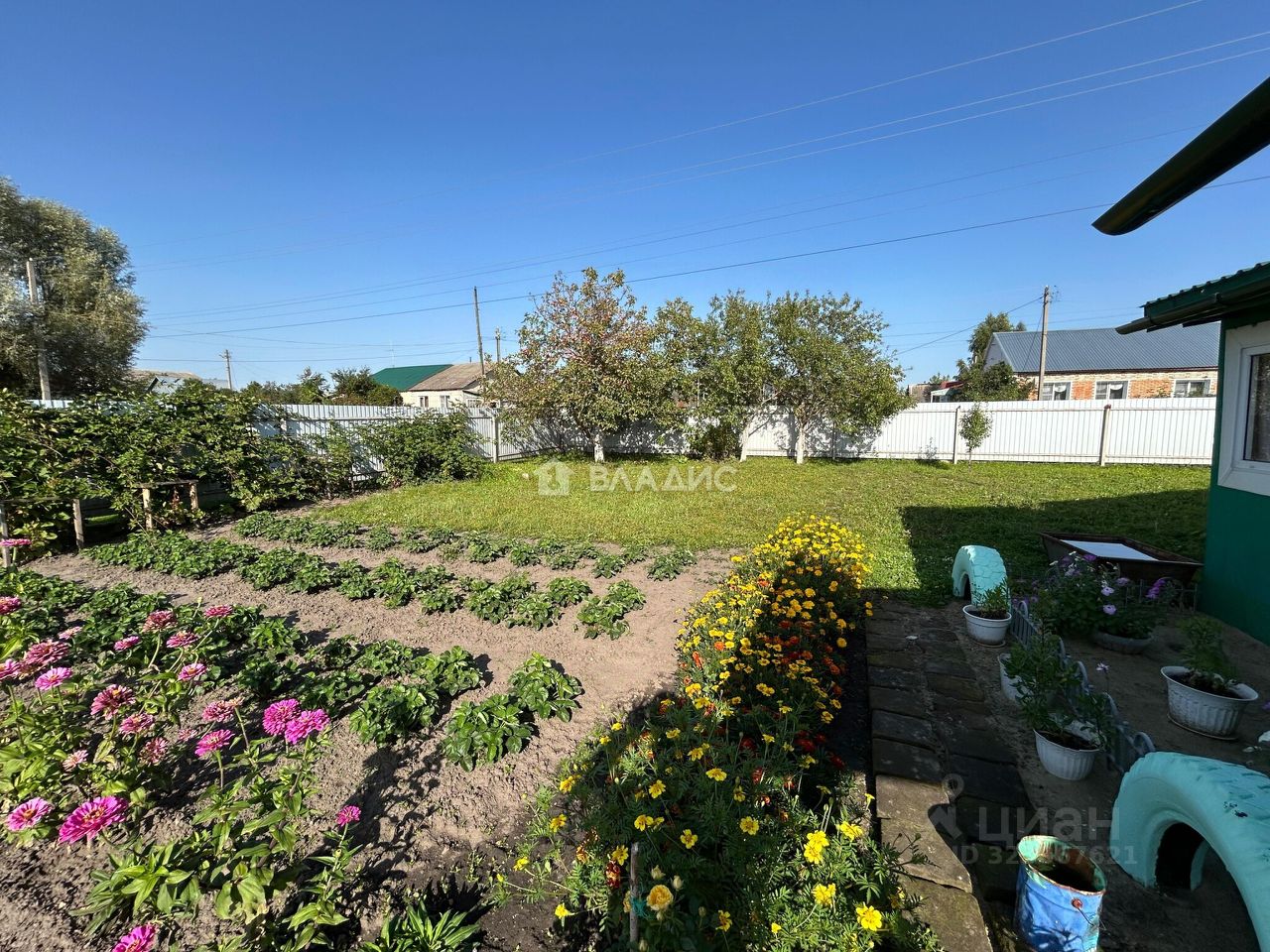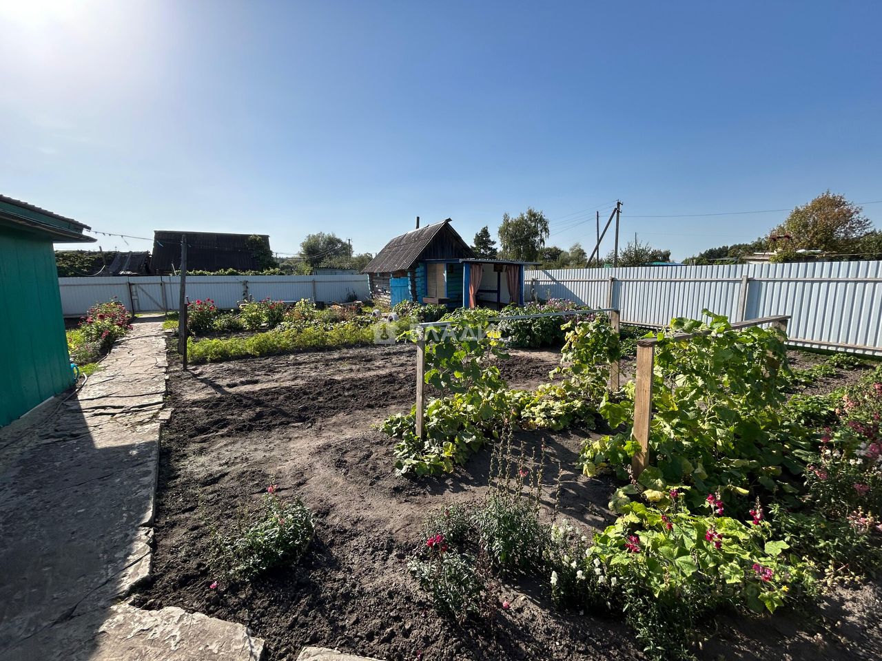 Есть надворные постройки: баня, погреб, для хозинвентаря, плодовые насаждения. По всему периметру огорожен забором профнастил.