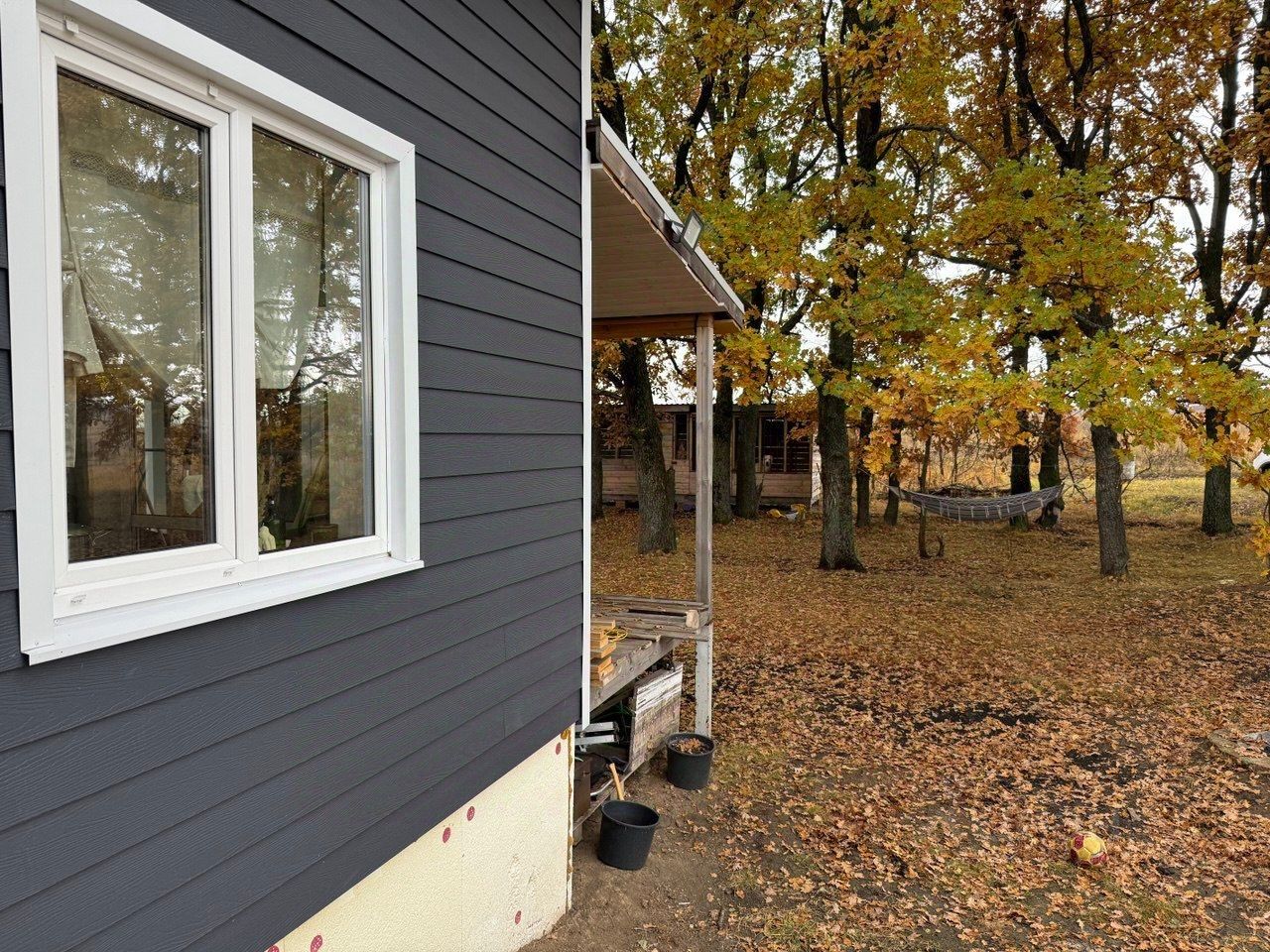 Фундамент - сваи железобетон. Защитная мембрана от грызунов. Утеплитель Knauf. Металлический сайдинг Квадро Брус. Пароизоляция. Крыша - металлочерепица. Водосточная система Grand Line. Отопительная система конвектор. Окна металлопластиковые мульти пакет 70 мм.