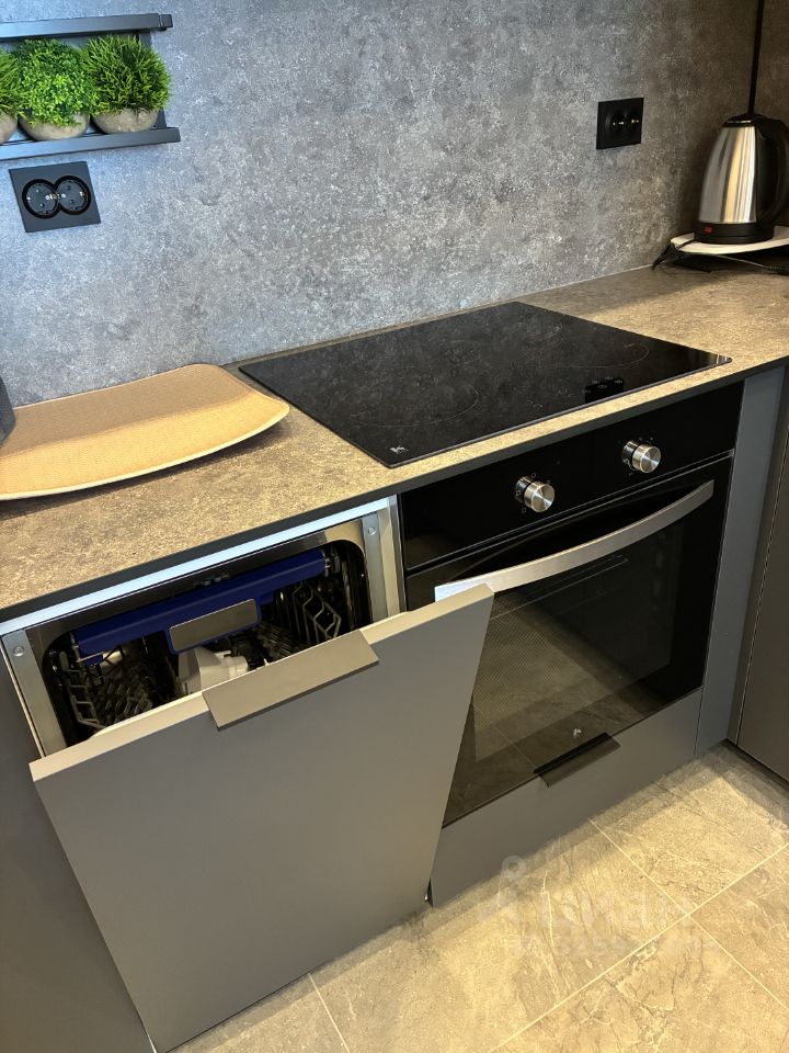 В квартире есть все необходимое для проживания: духовой шкаф, варочная панель, посудомоечная машина, стиральная машина, телевизор.