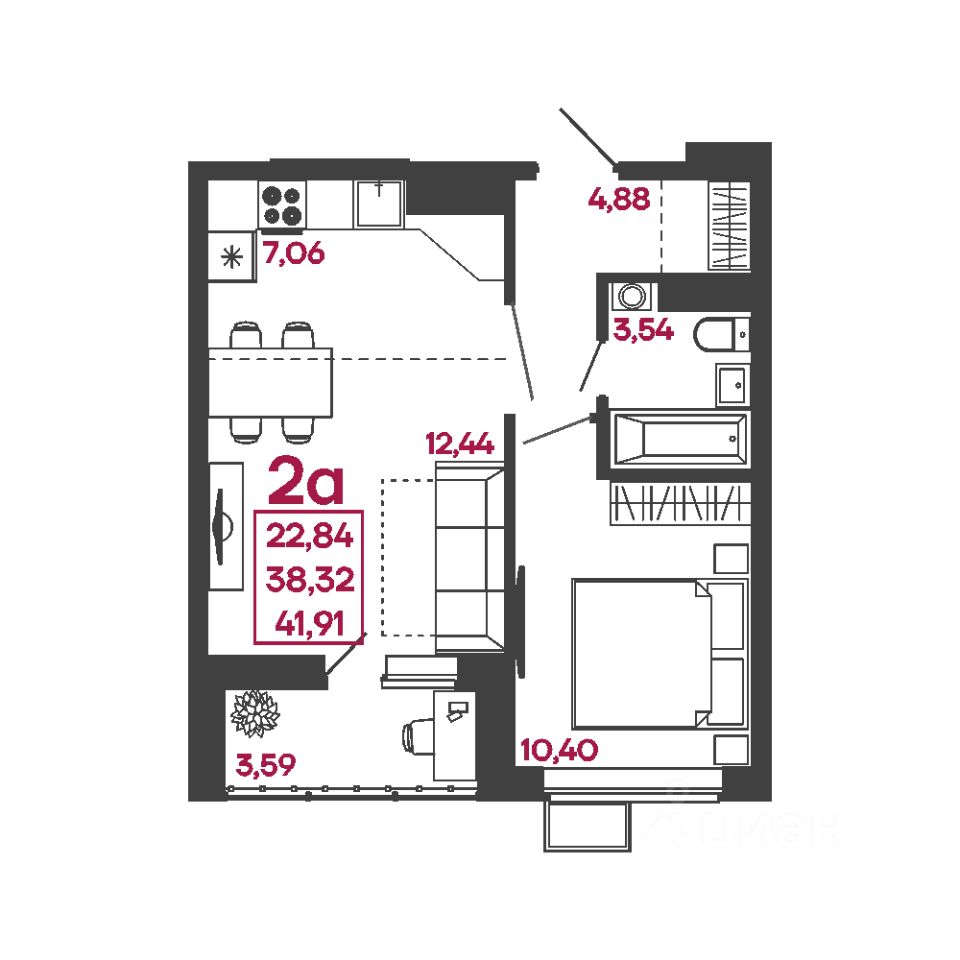 Общая площадь41,91 м2