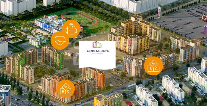 Инфраструктура: Рядом с ЖК живописное озеро, благоустроенная набережная со светомузыкальным фонтаном, спортивная тропа здоровья, пляж и все необходимые объекты социальной инфраструктуры: детсады и школа, бассейн и спортивно-развлекательный центр, поликлиника и почта, кафе и магазины. Закрытая территория - ''Двор без машин''.