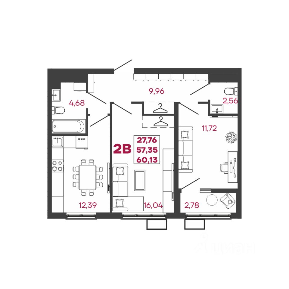 Общая площадь60,13 м2