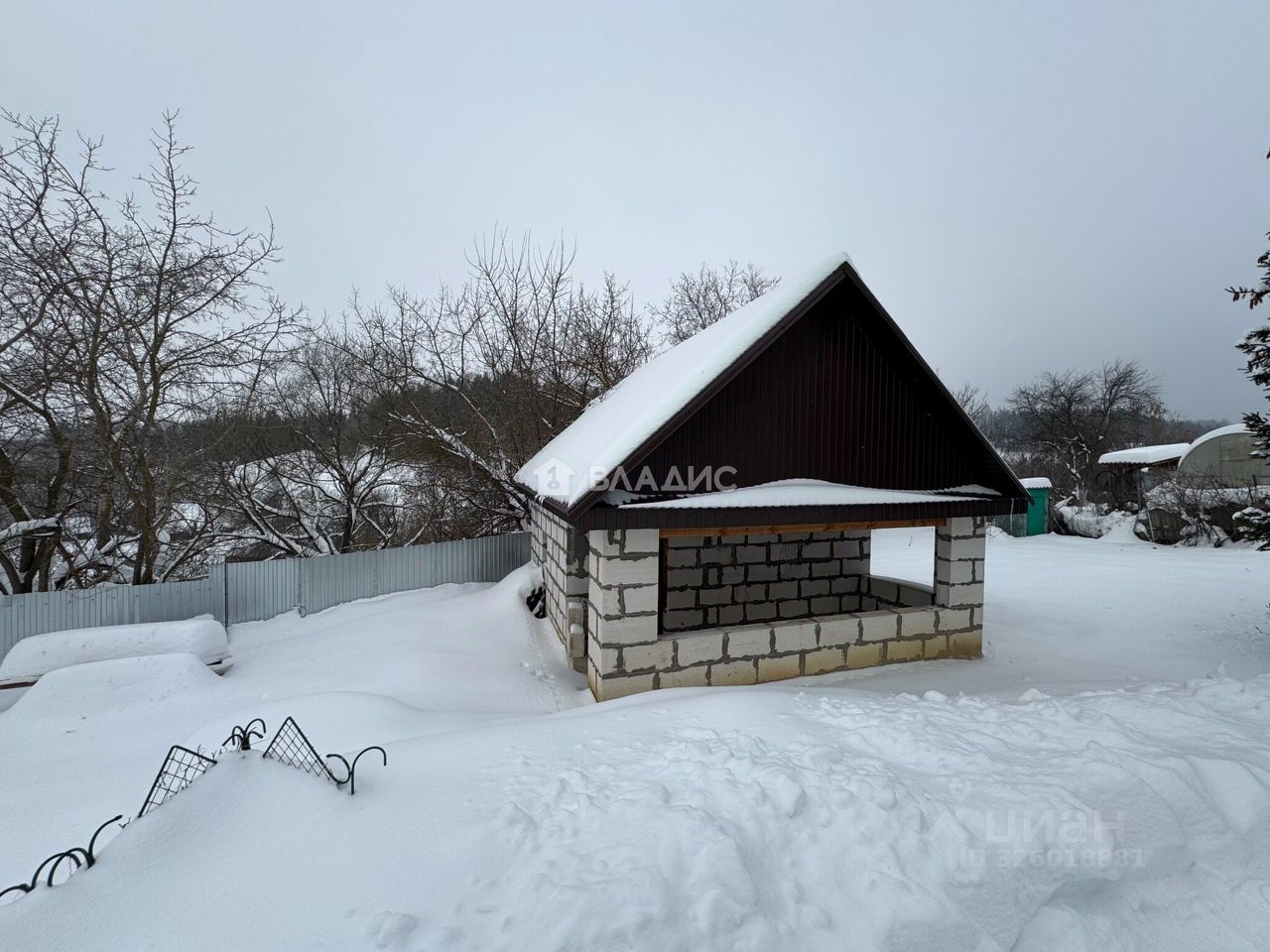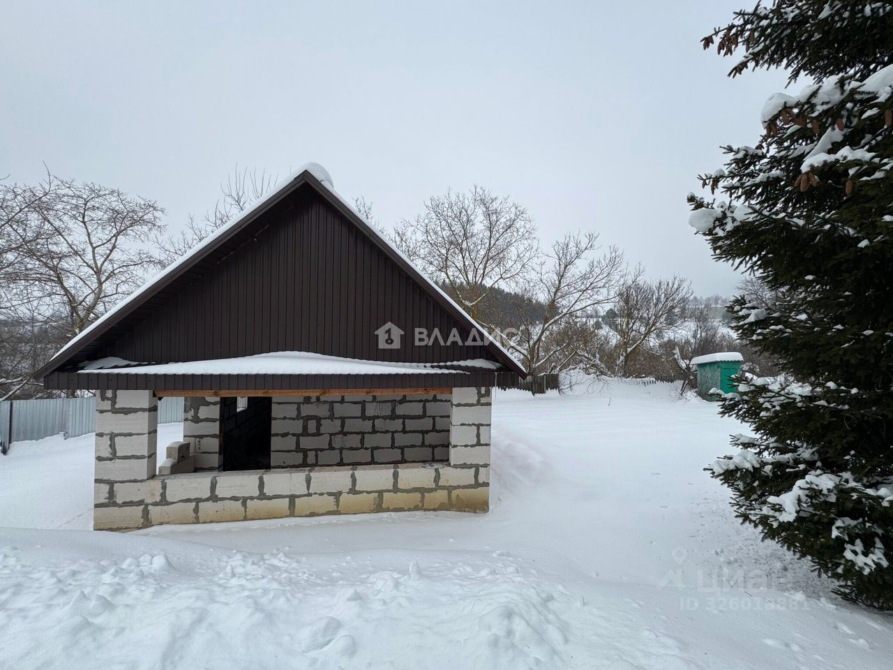 На территории начато строительство бани: возведены стены, крыша из металлочерепицы, приготовлен лес на полы.