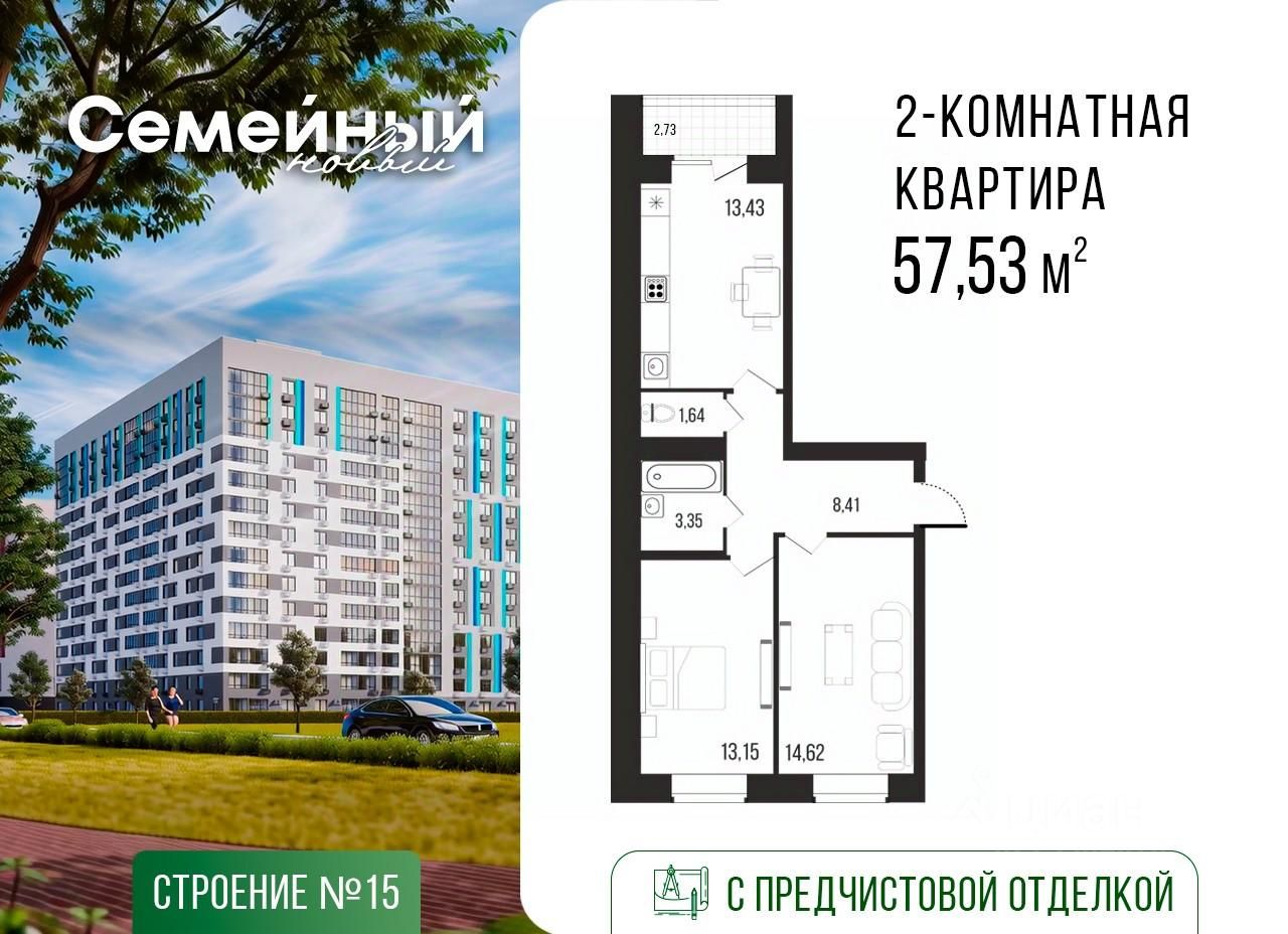 Общая площадь57,53 м2